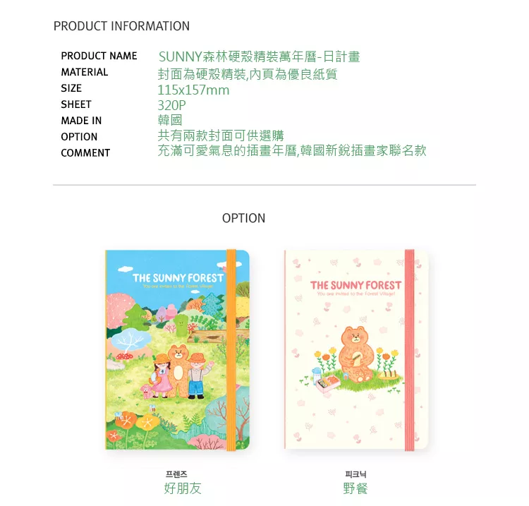 尺寸:11.5x15.7cm,整本共:320p,產地:韓國。