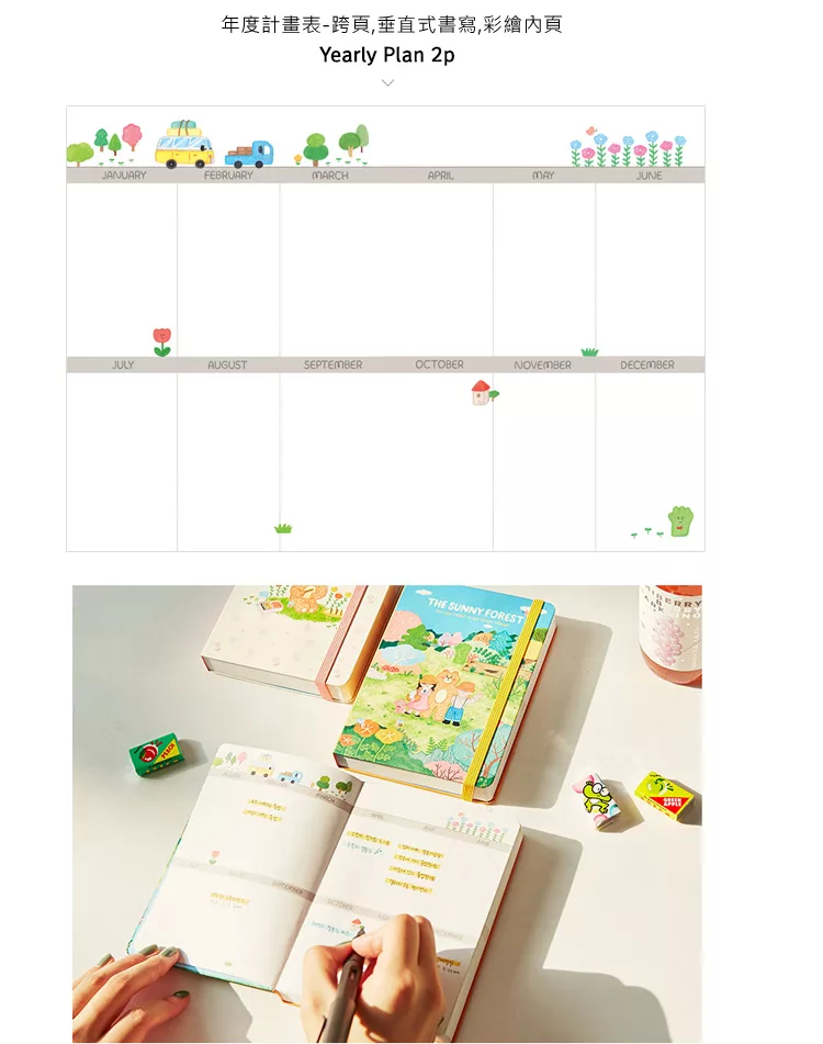 7321 Design推出Sunny森林萬年曆日誌,硬殼精裝萬年曆,內頁計劃最小單位為日計劃頁,